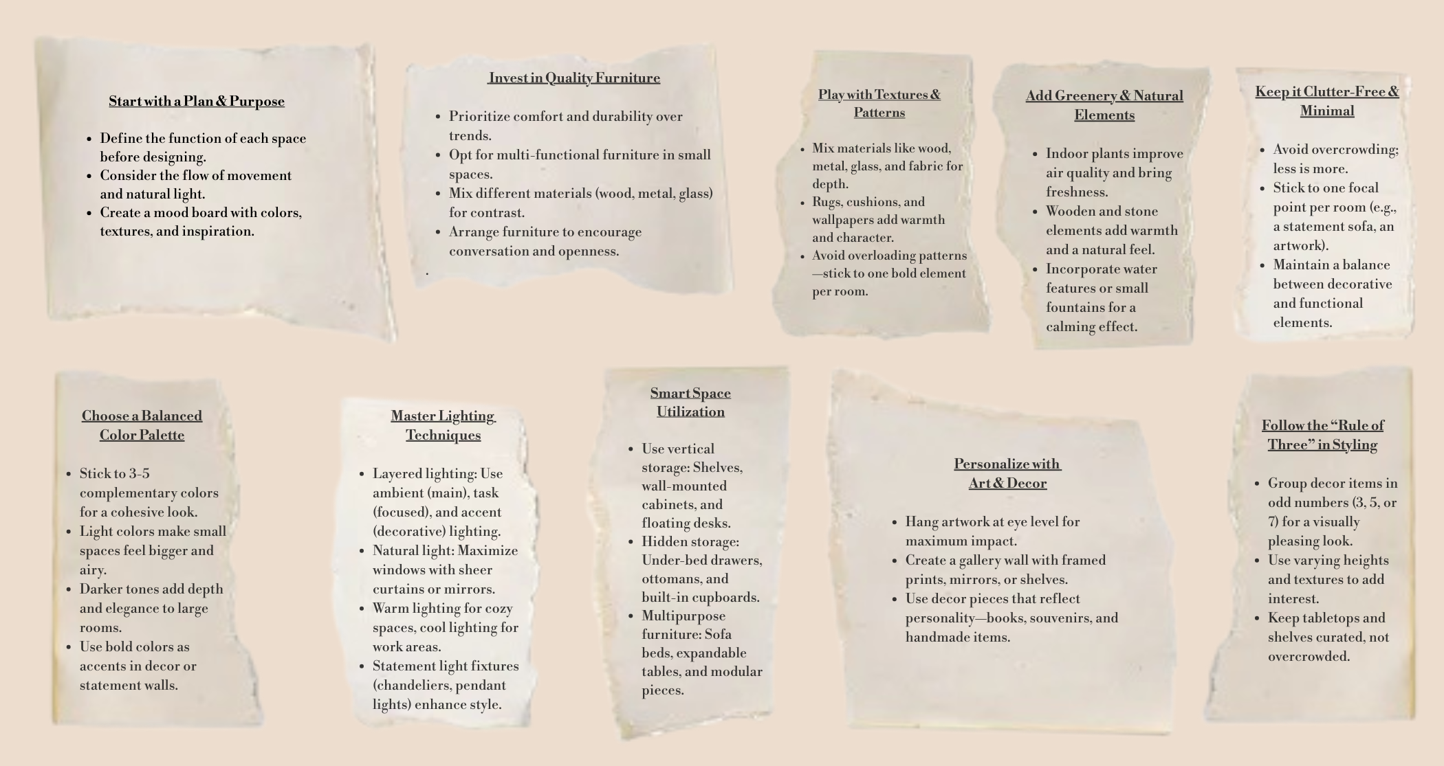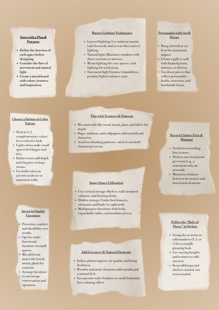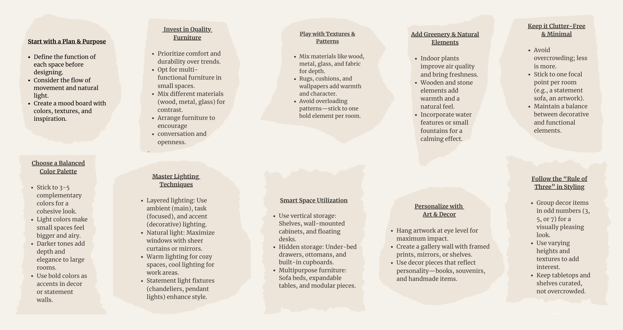 • Bohemian & Eclectic – Layered textiles, handcrafted decor, and global artifacts.