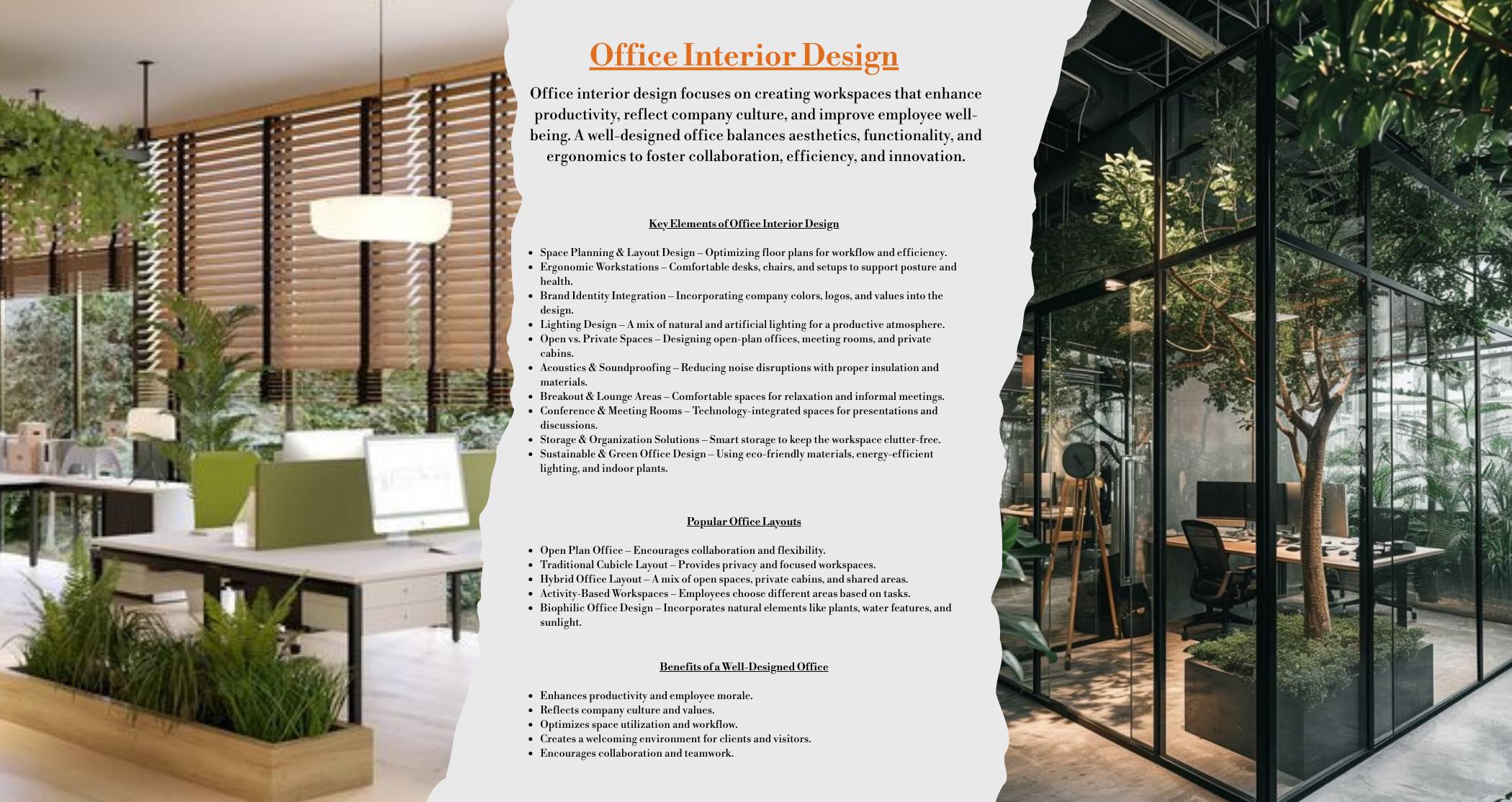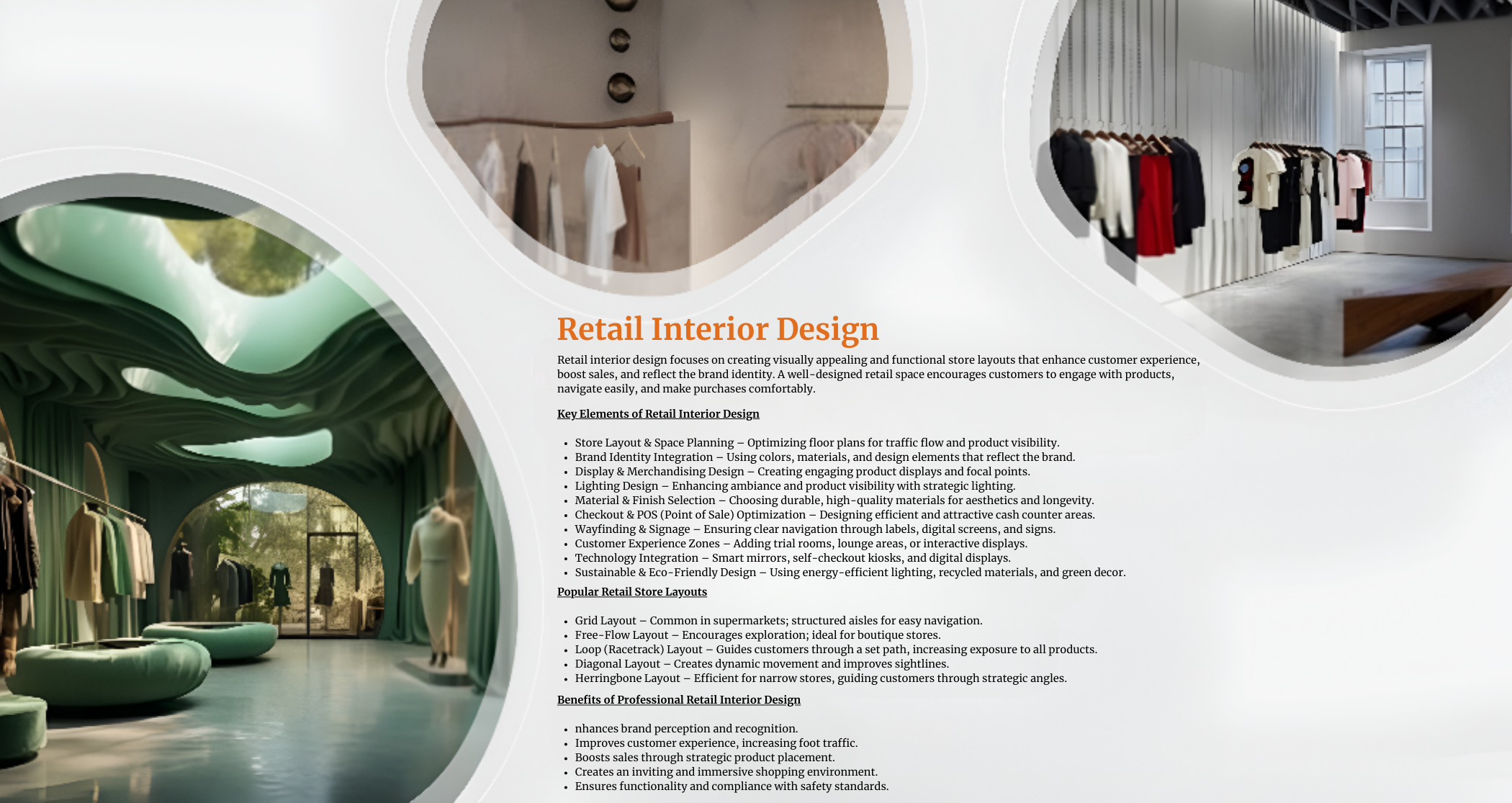 At Decor Planet, we transform spaces into stunning, functional environments that reflect your style, needs, and vision. As a full-service interior design firm, we specialize in creating bespoke designs for residential, commercial, office, and retail spaces, ensuring each project is crafted with precision and creativity.