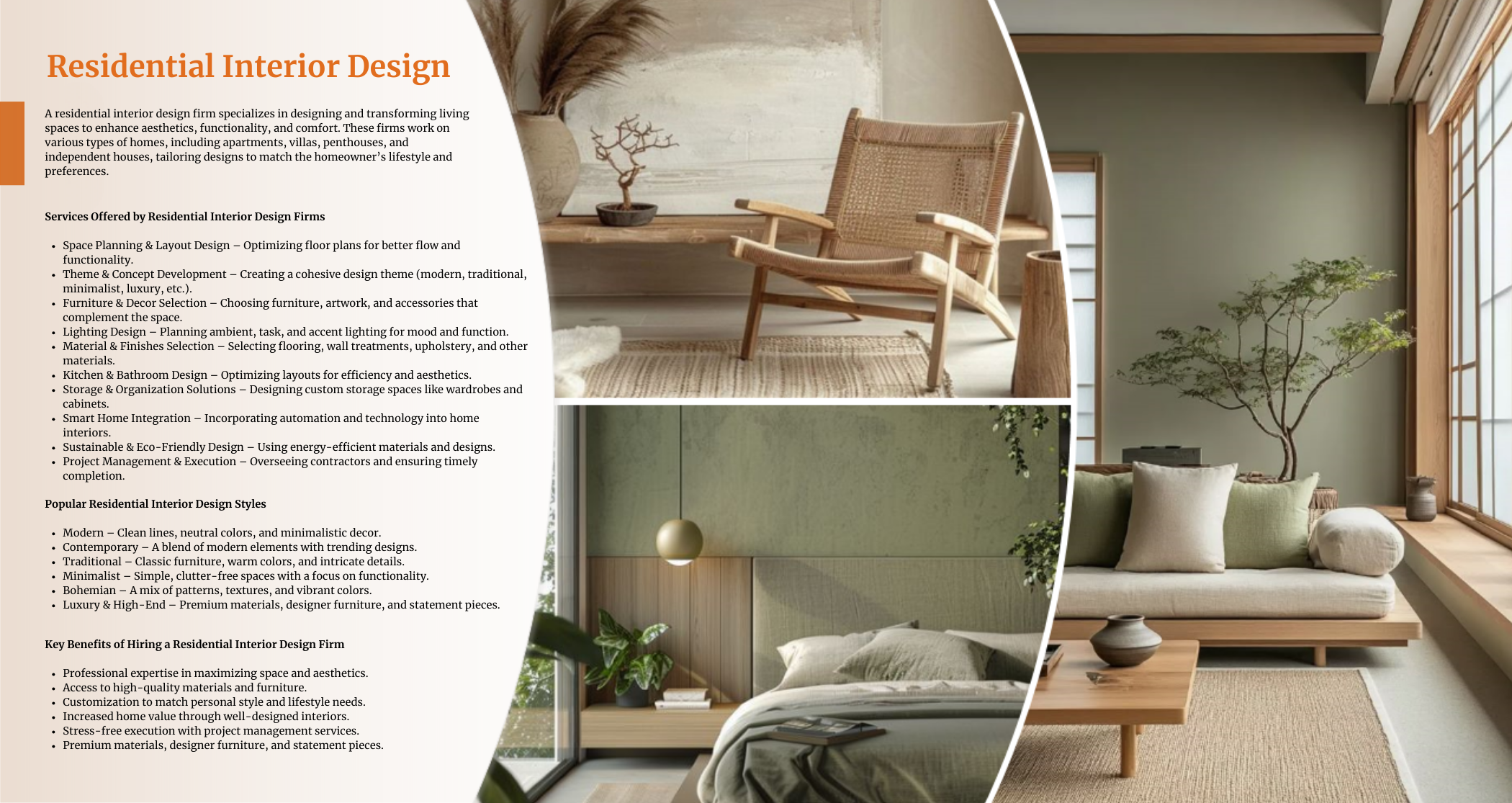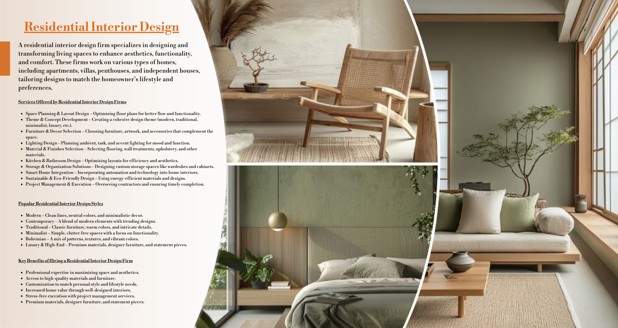 • Modern & Minimalist – Clean lines, neutral palettes, and functional layouts.